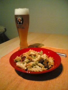Den hartnäckigen Kampf gegen den Einkauf habe ich mir heute abend mit einer Portion Schinkennudeln belohnt. Nichts geht einfacher als Schinkennudeln. Schinken und Brotstücken anbraten, Nudeln kochen, zusammenkippen, würzen, fertig. Und dazu ein leckeres Bierchen.