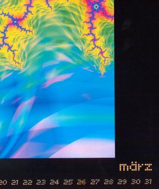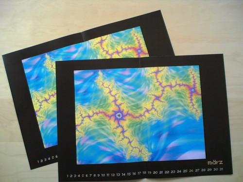 Also bin ich jetzt erstmal wieder am Zug. Jetzt müssen noch ein paar Fraktale erstellt werden, die natürlich nur für Freunde veröffentlicht werden und in den Kalender einfließen. D.h. Der Kalender wird ausschließlich Bilder enthalten, die nur auf dem Kalender in voller Größe (A3 Querformat) zu bewundern sind. Ziel wird sein: Eine kleine Auflage an Kalendern, die dann öffentlich hier angeboten werden. Und natürlich eins: Es wird einen Kalender zu gewinnen geben, bei den Fraktalen, die keinen Namen von mir bekommen haben.