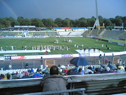 Zwischendurch sorgten einige Schauer für Erfrischung und einen wunderschönen Regenbogen zum Ende des Spiels, als die Offense in den letzten zwei Minuten noch einen Touchdown zur Führung machte.