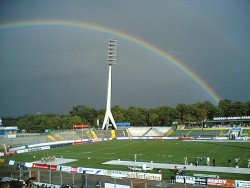 Heute nachmittag war dann das letzte Heimspiel der Dresden Monarchs in dieser Saison und im Rudolf-Harbig-Stadion. Demnächst beginnt der Umbau des Stadions und die Stadt Dresden war so clever und bot den Dresden Monarchs keinen Vertrag zur Nutzung des Stadions nach dem Umbau an. Warum sollte sie auch einem Team, das in der obersten Liga der German Football League spielt, Spieler aus Amerika verpflichtet und jetzt zum wiederholten Male in den Play-offs steht, einen Vertrag anbieten? Statt dessen bietet man ihnen das Heinz-Steyer-Stadion mit seiner baufälligen Holztribüne an. Trotz alledem ging es heute noch um den dritten Platz in der GFL Nord, wo die Cologne Falcons zu Gast waren. Im ersten Viertel schwächelten die Monarchs enorm und fielen gleich erstmal 10 Punkte in den Rückstand. Aber die restlichen 36 Minuten gehörten den Monarchs, die Defense stand (fast) und die Offense sorgte dafür, dass das Spiel mit 21:17 gewonnen wurde.