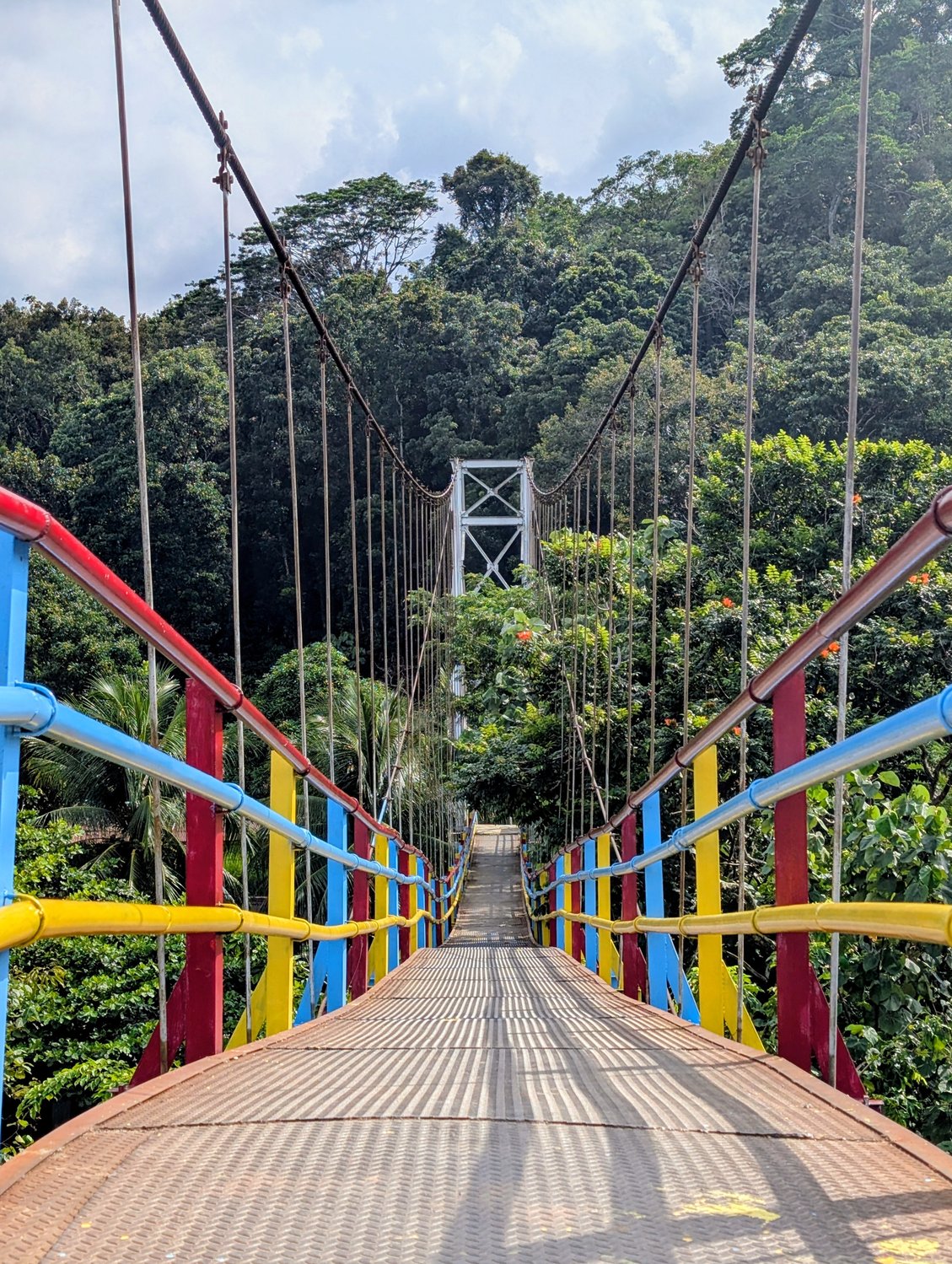 Geplant war, dass wir in Bukit Lawang in einem Hotel untergebracht waren, was aussah wie ein Betonbunker. Also machten wir den Vorschlag, ob wir ins Hotel Orangutan dürfen. Unser Wunsch wurde erfüllt. Jedoch liegt das Hotel am Ende des Dorfs, wo kein Auto hinkommt. Also mussten wir unsere Koffer den schlecht gepflasterten Weg entlang ziehen. Merke: In Asien immer mit Rucksack reisen!